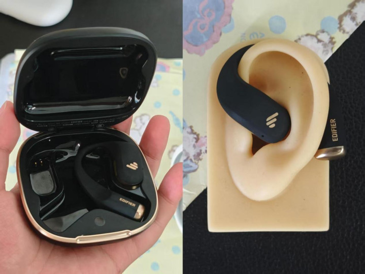 耳机重量9.9g,耳挂整体的设计就是比较舒适,非常柔软的耳挂,可以和耳朵贴合的很好,就是不支持调节,并且耳挂的电池放置位设计的比较大,上耳的感受比较明显,不太适合小耳型的人去使用!并且上耳的稳固性也不足!