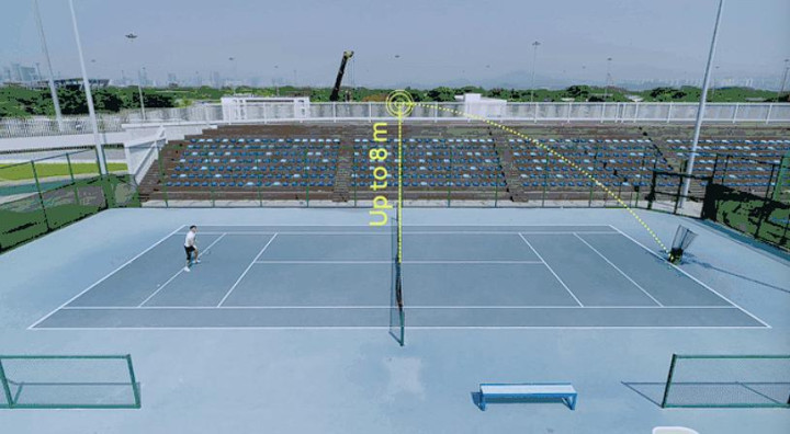 机器人配备的双目4K摄像头能够跟人眼一样捕捉深度和速度信息,从而实现更准确的3D跟踪和实时镜头分析。无论是正手、反手等击球,Acemate网球机器人都能持续调动用户走位,模拟真实对手展开对打。