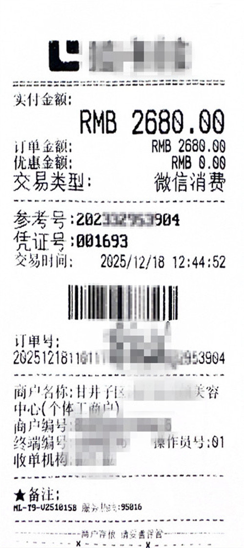 2025年12月16日,李女士接到电话,称她被选中成为“形象代言人”,可享受一年内免费美容服务,名额仅30个。2025年12月18日,李女士来到甘井子区汇通街这家美容院后,得知“免费”条件为:预先缴纳一笔“诚意金”,一年内做完36次美容全额返还。若未做完,款项将转为普通消费余额。李女士认为次数过多,经协商,最终签了“24次服务,缴费2680元”的《形象代言人确认书》。
