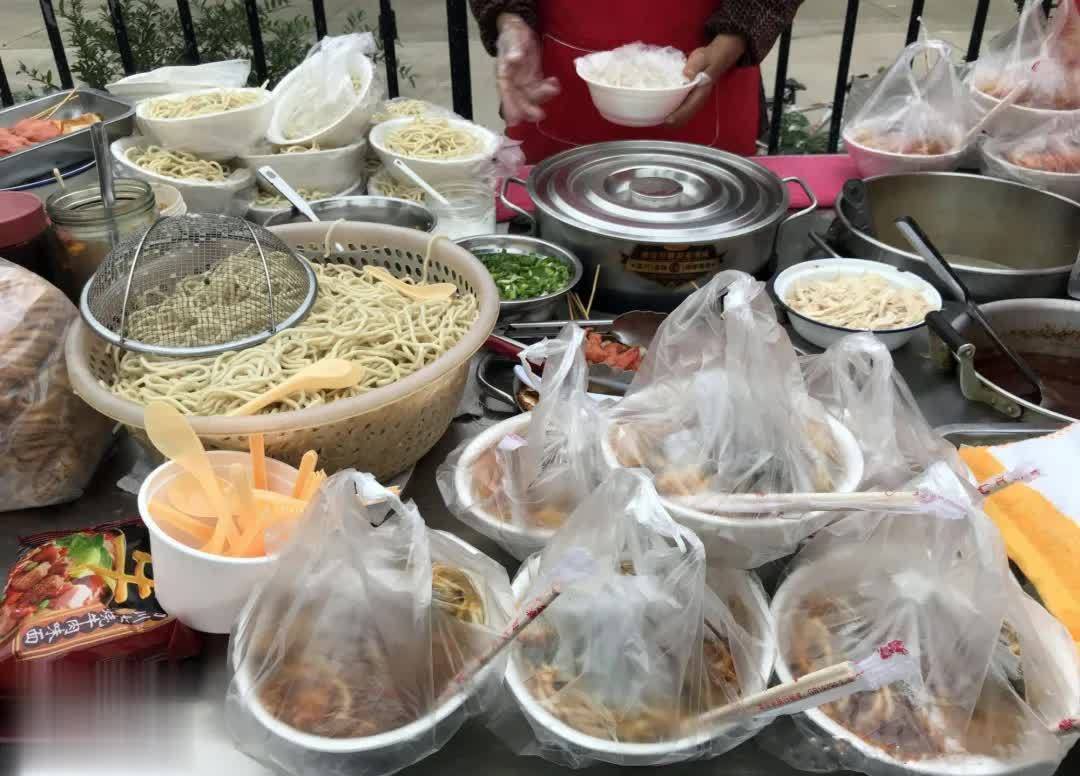 走在大街小巷,从煎饼果子到麻辣烫,从热干面到羊肉汤,几乎所有路边摊都有个共同特征:给碗套塑料袋。