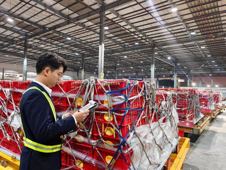 “从2月9日到春节前,每一天都有超10吨山竹从吉隆坡果园直飞广州。”南航物流相关负责人表示。据统计,春运以来,南航物流在广州地区保障进口生鲜冷链货物已较春运前增长超10%,货物品类涵盖水果、海鲜等,其中东南亚优质水果占比显著。