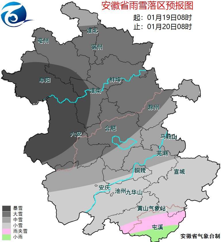 此外,根据气象部门预报,预计19日,安徽阜阳、亳州、六安、淮南等地有暴雪,降雪量将达10~15毫米,淮北、宿州、蚌埠、合肥、滁州等地有大雪,降雪量5~10毫米,大别山局部地区还将有冻雨。