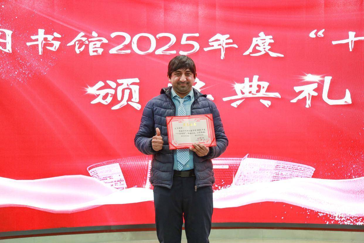 图为大卫(左)在颁奖现场。初到中国时,语言隔阂与文化差异曾让大卫感到迷茫。“初来乍到,面对陌生的环境我不知道该从哪儿开始认识中国。也正是在那段日子里,图书馆成了我最常去的地方。”大卫回忆道。在他心中,图书馆就像一盏静默而温暖的灯,悄然照亮了他走近中国的漫漫长路。大卫通过大量阅读,不仅掌握了丰富地道的中文表达,也逐渐感受到了中国历史与文化的深厚内涵。“我尤其喜欢《西游记》和《论语》。《西游记》里天马行空的想象以及《论语》中历久弥新的智慧,都深深吸引着我。”大卫感慨地说,正是这些书籍,一点点拉近了自己与这片土地的距离,也让他在异国他乡找到了“家”的感觉。在大卫看来,郑州图书馆不只是藏书与借阅的空间,更是一座科技与文化交融的现代驿站。“与巴基斯坦的图书馆相比,河南的图书馆更具‘科技范儿’。智慧检索系统、数字阅读平台、互动体验装置……这一切都让知识的获取变得更加高效、也更加生动有趣。”他笑着说。