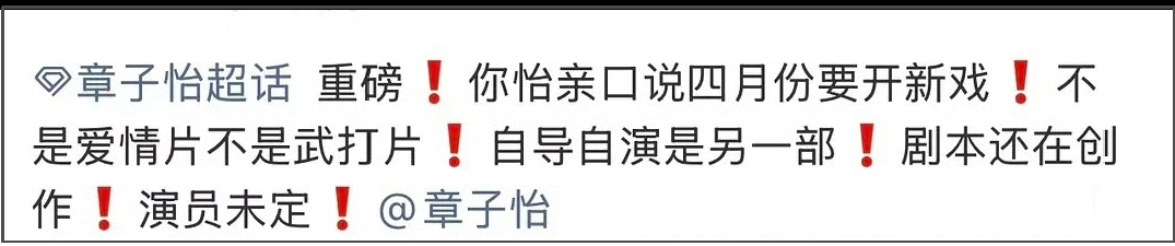 不过,据章子怡最新采访透露,她4月的确要开新戏,但不是爱情片也不是武打片,至于自导自演的戏还处于剧本创作中,演员也没定。那么章子怡要进哪个组?此前网传章子怡将和李安导演合作新电影,但并未官宣。大多时候,女演员拍电影为了上镜好看基本都会提前减肥,除了丑角或者年长角色,章子怡这波不知是不是想转型了。